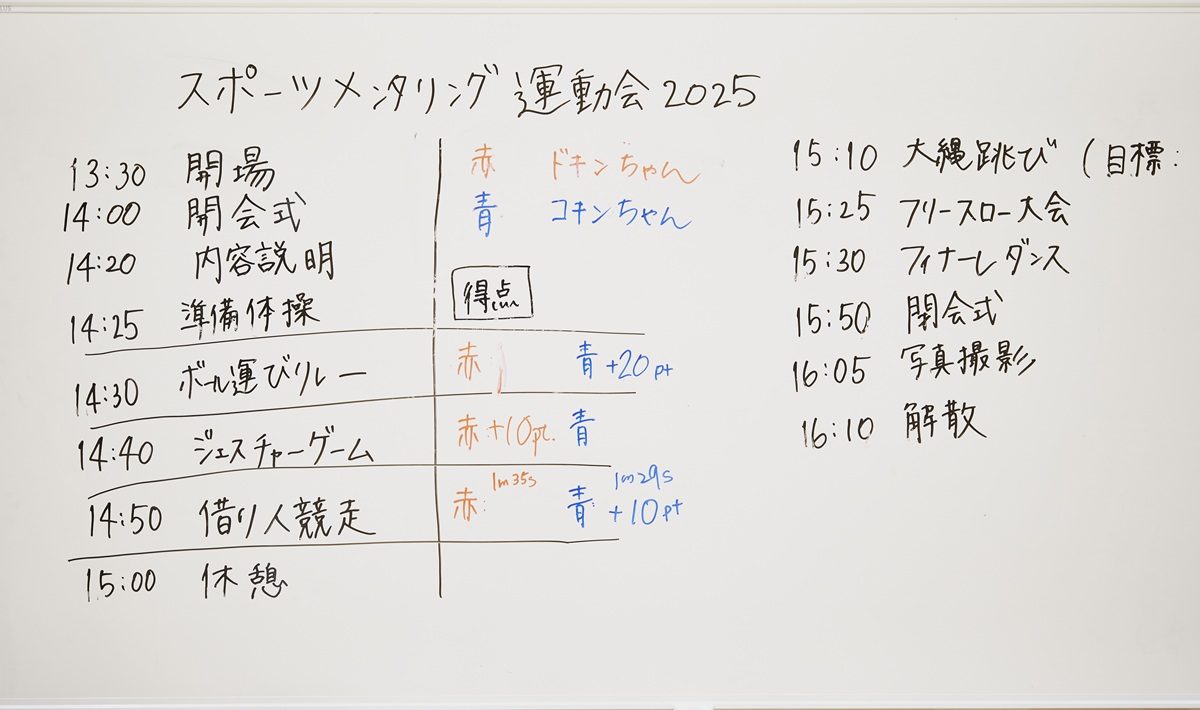 参加者の皆さんは、いつものスポーツメンタリングの通り、チェックインと「スポーツメンタリングの約束」を確認してから、ふたつのチームに分かれて得点を競いました。最後のフィナーレダンスでは、連帯感MAXのなか、また明日から頑張ろう、と気持ちを新たにしました。
